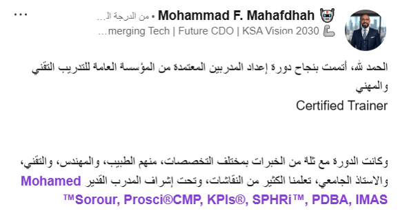 خبره في مجال التدريب للشركات والمؤسسات والافراد
