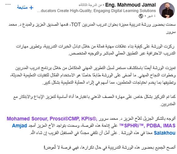 رسالة من الدكتور محمد سرور لاي مدرب او محترف في مجاله لتعزيز دخله عن طريق طرح خبراته من خلال البرامج التدريبية